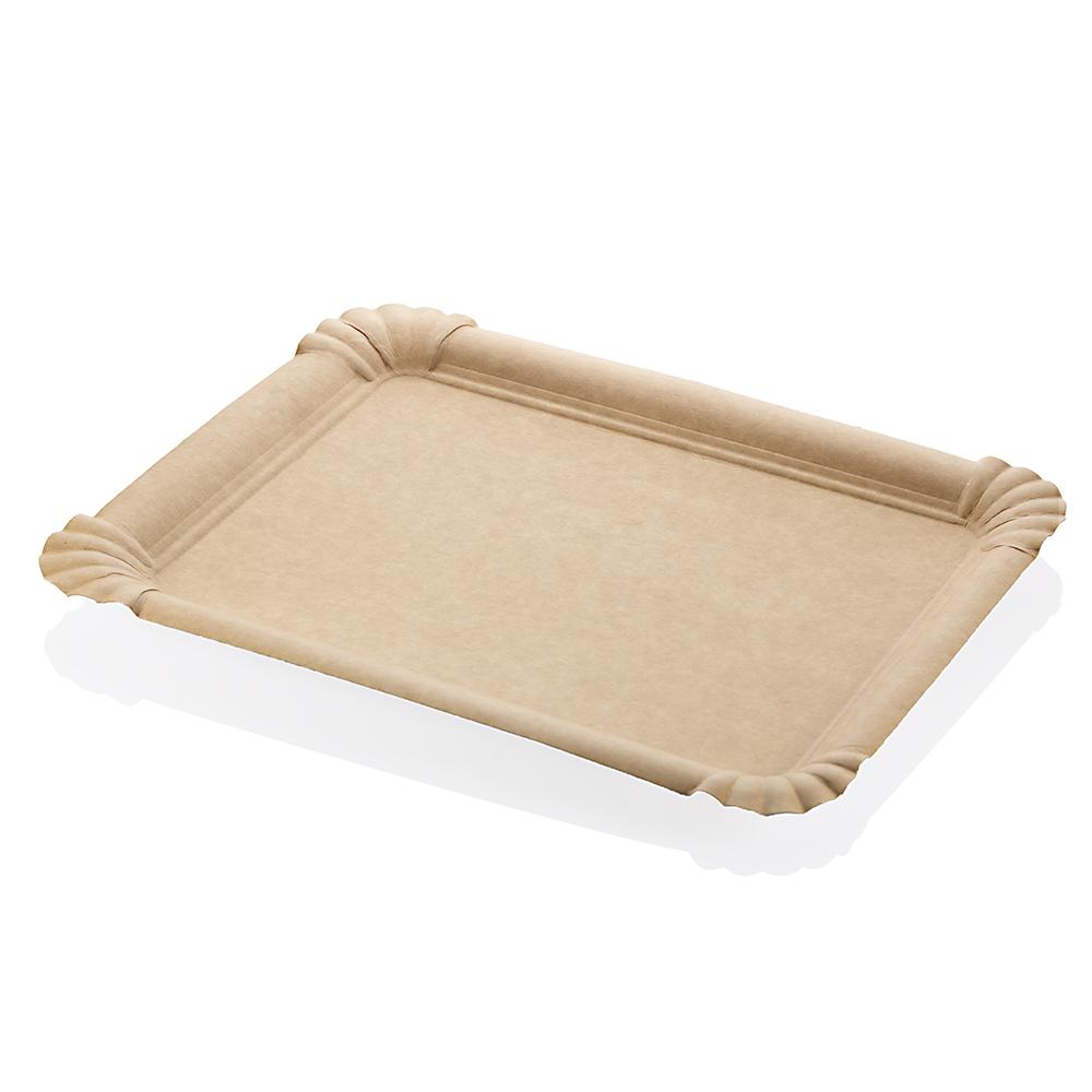 Vassoio in cartoncino color avana ideale per tranci di pizza, dolci, ristorazione veloce e qualsiasi cibo di strada. Questo formato è ottimo per i food truck e chioschi che servono cibo da consumare in piedi.