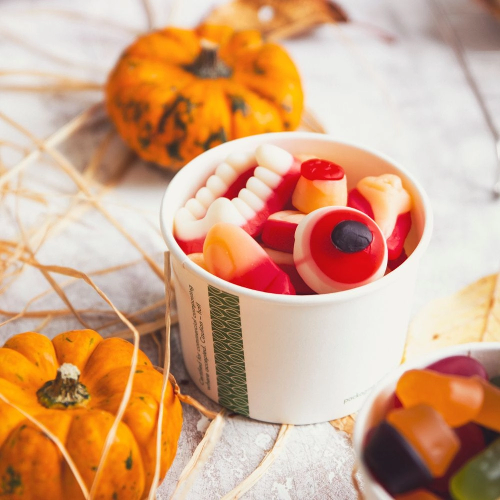 Queste ciotole takeaway sono realizzate in cartoncino proveniente da fonti sostenibili e una lamina interna in PLA (bioplastica ricavata dal mais).