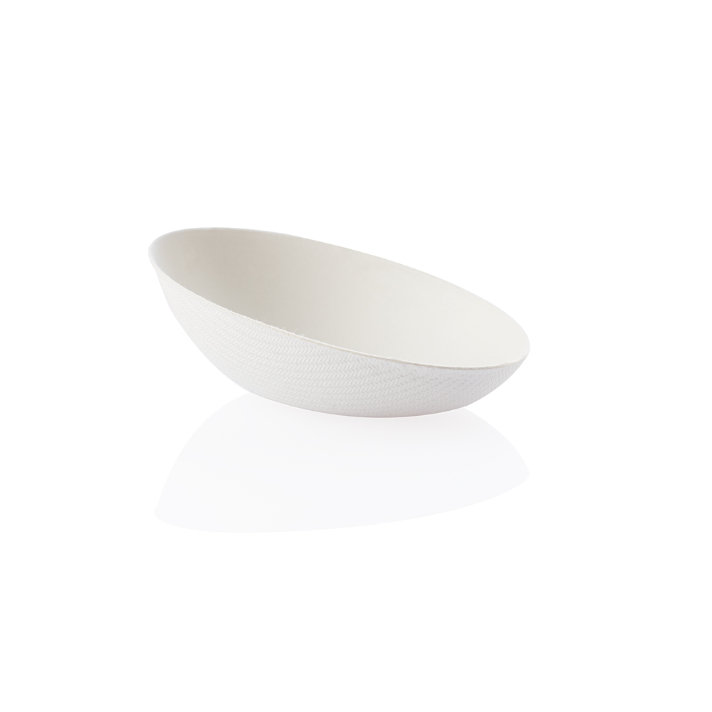 Contenitori ovali realizzati in pura cellulosa pressata. Ciotolina da finger food con una forma armonica ed elegante. Iedale per finger food, assaggi, catering di design ed ecosostenibili
