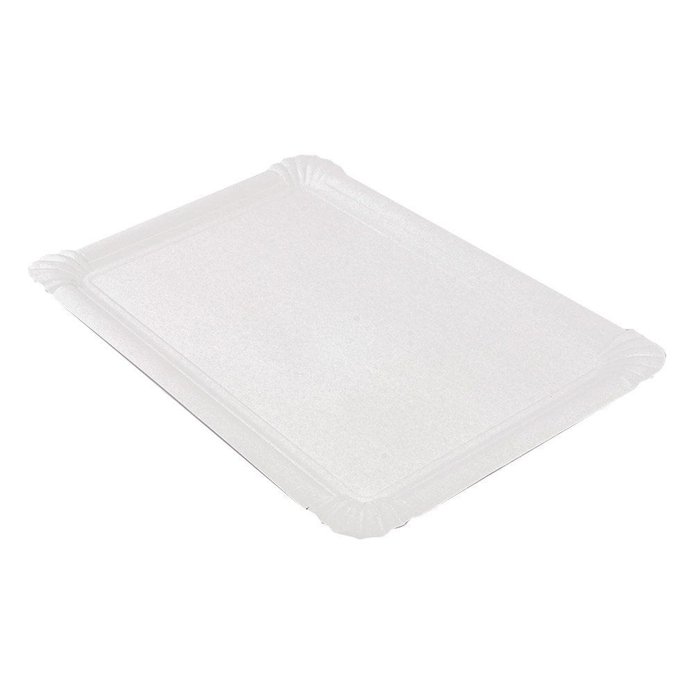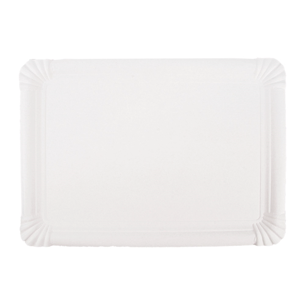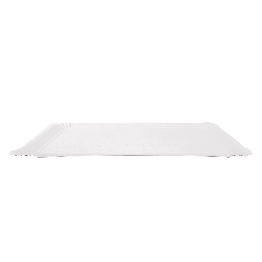 Vassoio in cartoncino bianco ideale per tranci di pizza, dolci, ristorazione veloce e qualsiasi cibo di strada. Questo formato è ottimo per i food truck e chioschi che servono cibo da consumare in piedi.