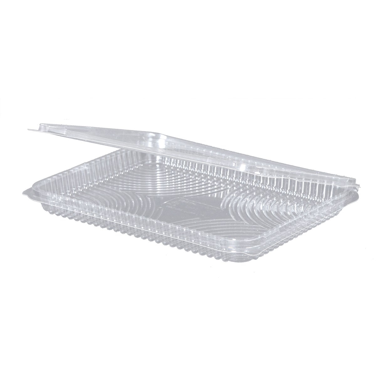 Contenitore da 570 ml in PLA. La chiusura con il coperchio ermetico a scatto le rende molto pratiche per l'asporto e la conservazione di cibi freddi come affettati, carpaccio, fettine di carne.