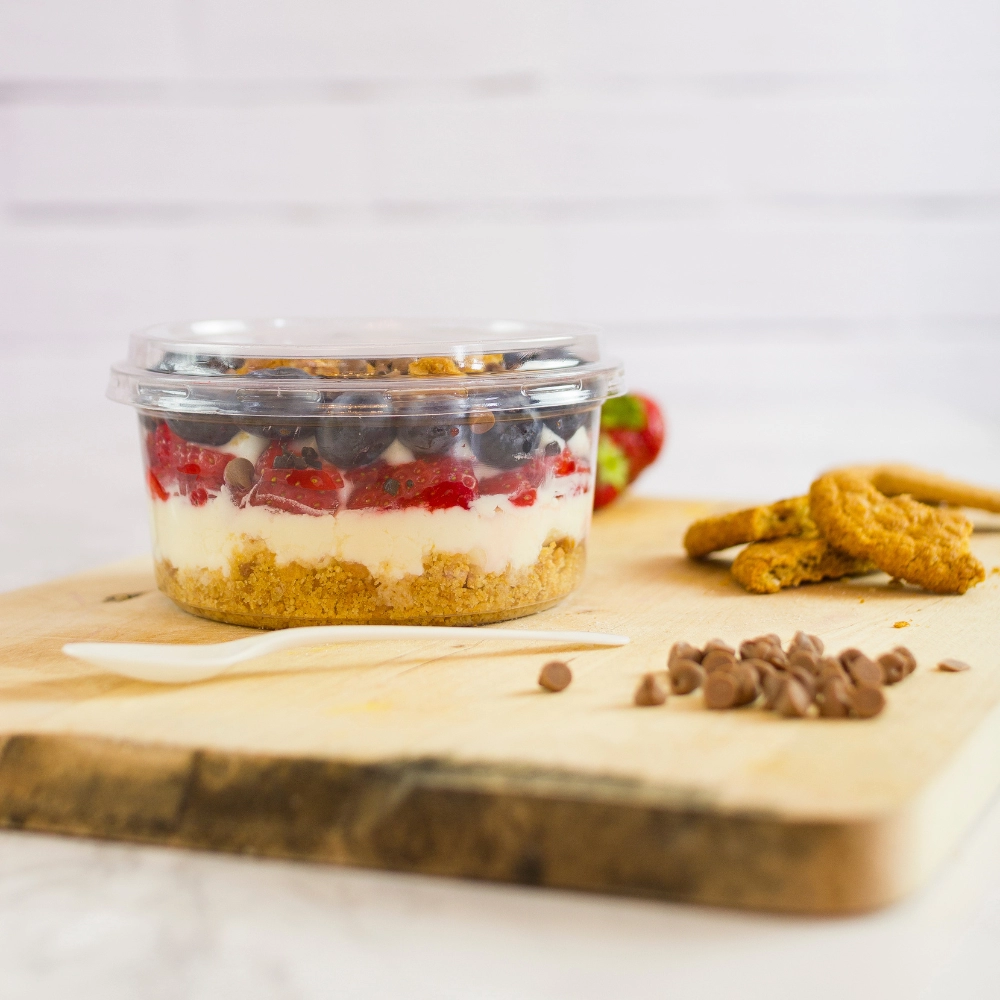 Ciotola da 360 ml in PLA. Molto pratiche per l'asporto di paste fredde, insalate di riso, dolci al cucchiaio, semifreddi, macedonie e yogurt.