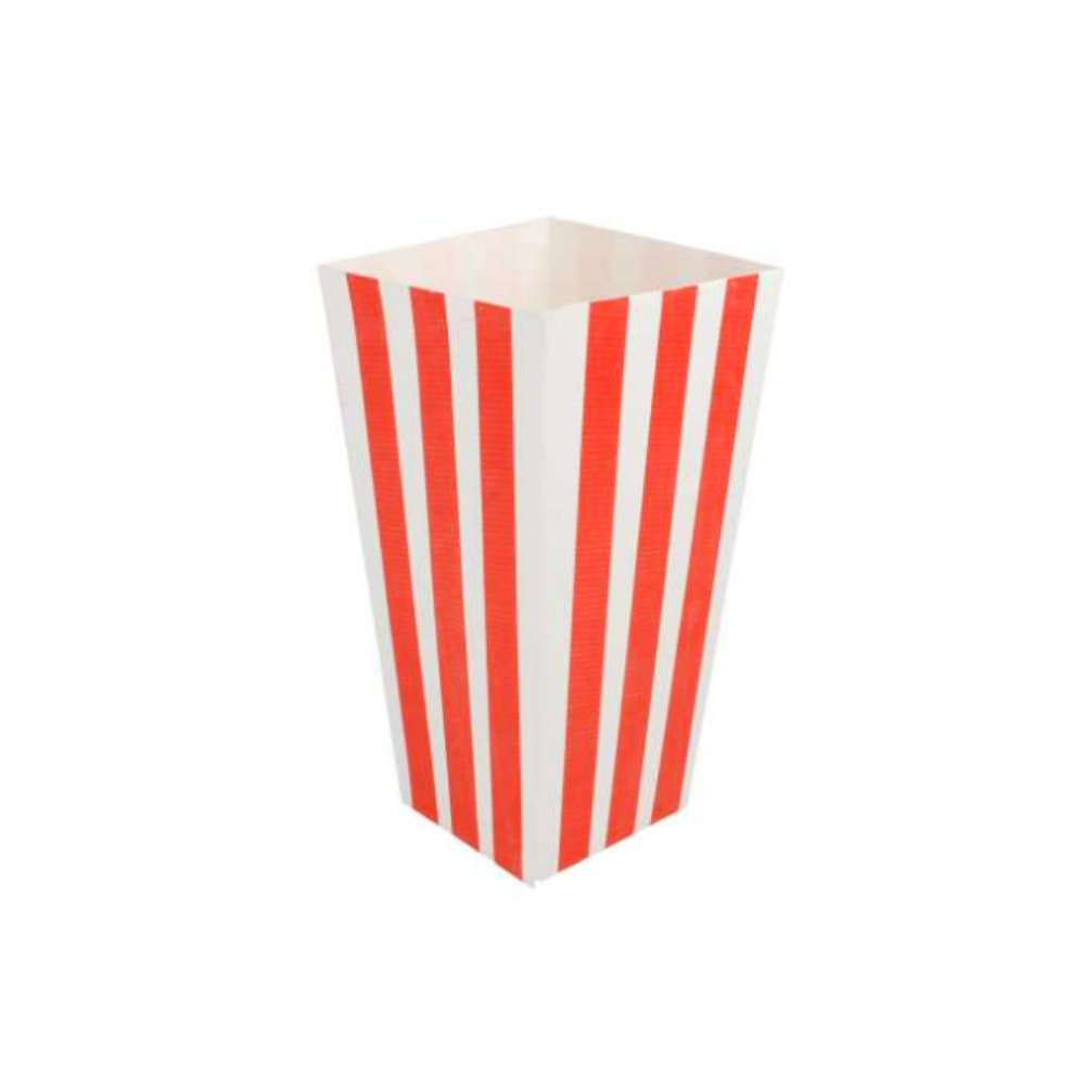 Recipiente monouso per pop-corn realizzato in resistente cartone ondulato nano-micro, con capacità da 1 litro. Il design verticale e compatto lo rende ideale per il consumo in movimento, perfetto per cinema, eventi e street food.