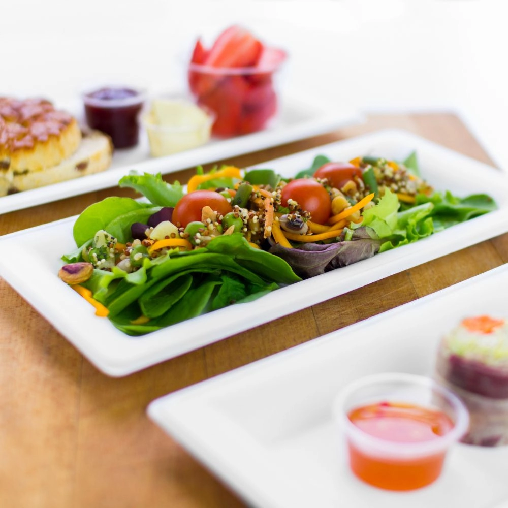 I piatti biodegradabili e compostabili con certificazione direttiva europea EN13432, sono realizzati in polpa di cellulosa pressata, un materiale rinnovabile ricavato dalla canna da zucchero. La differenza rispetto ai classici piatti in plastica è che a fine utilizzo possono essere smaltiti nel rifiuto organico assieme agli avanzi di cibo.