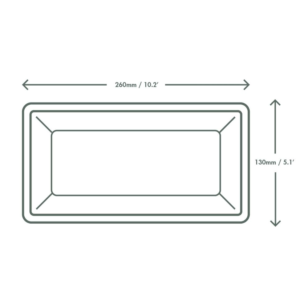 La misura da 26x13 cm è ideale per servire antipasti, aperitivi, finger food e dessert. Il bordo rialzato inoltre esalta le preparazioni ed i cibi.