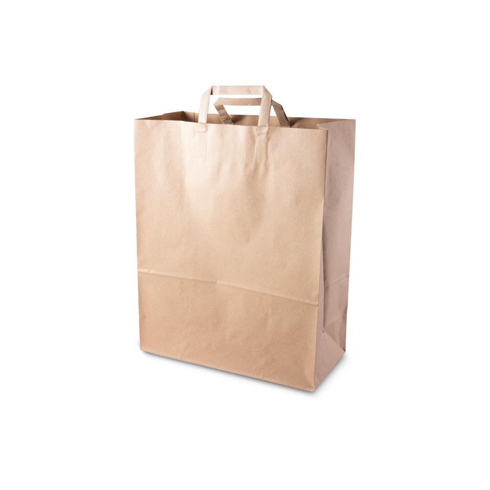 Un sacchetto monouso per la spesa elegante, resistente ed ecosostenibile, realizzato in carta riciclata al 100% senza l'utilizzo di sbiancanti o coloranti.